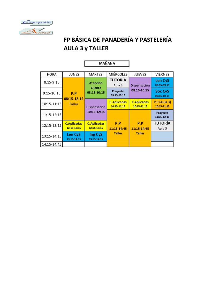 HORARIO FPGB «Actividades de Panadería y Pastelería»