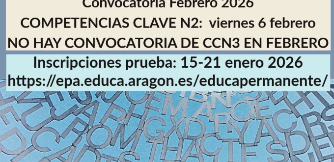 Hoy se ha celebrado la prueba libre para acreditar las competencias clave en los 36 CPEPA de Aragón; la próxima convocatoria será en febrero del 2026; la siguiente, en junio.